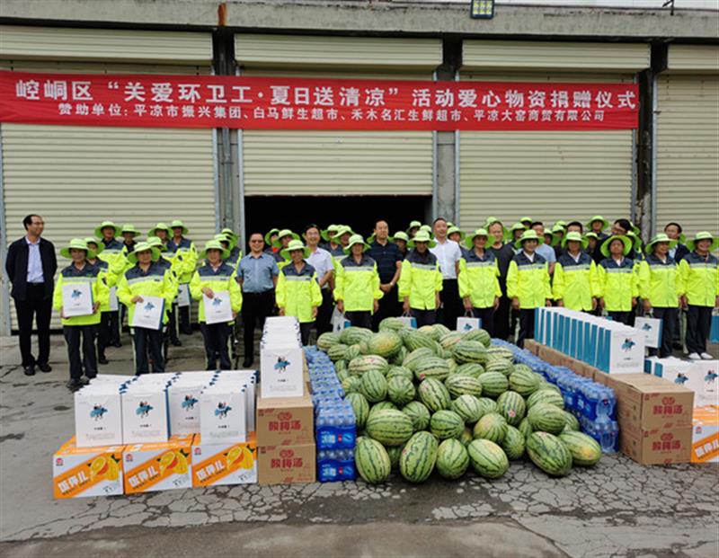 為了積極響應(yīng)區(qū)委、區(qū)政府發(fā)出的以“清涼度盛夏,安康伴我行”為主題的“夏日送清涼·真情暖人心”活動(dòng)的號召,在區(qū)工商聯(lián)的組織下,平?jīng)鍪姓衽d集團(tuán)于2020年7月18日下午,參加了在崆峒區(qū)環(huán)衛(wèi)處院內(nèi)舉行的“夏日送清涼·真情暖人心”活動(dòng)物資捐贈(zèng)儀式,集團(tuán)副董事長鄭龍參加了本次活動(dòng),并在活動(dòng)儀式上代表捐贈(zèng)企業(yè)的所有同仁發(fā)表了講話。